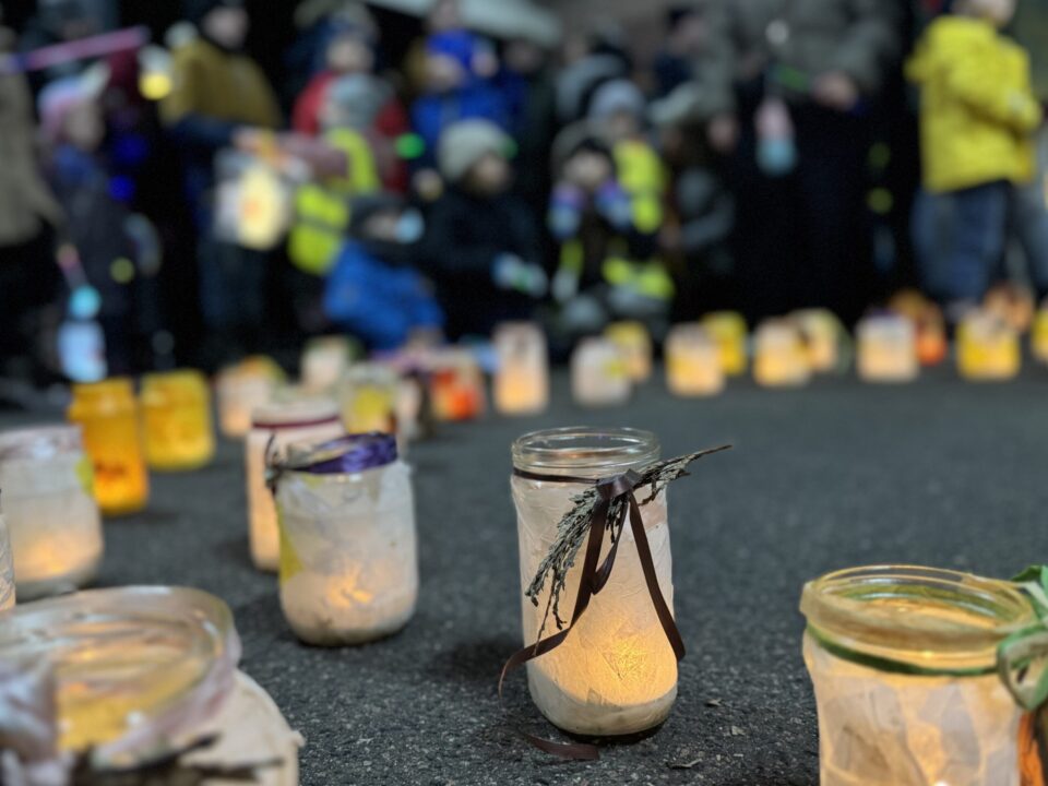 Nach dem Laternenumzug, der begleitet wurde vom Spielmannszug Drums &Pipes Eckernförde, trafen sich Kinder, Eltern ,die Mitarbeiter*innen vom Zollhaus und der Villa Kunterbunt beim Lichterschein von ca. 50 geschmückten Windlichtern zum Lichterfest unter dem großen Vordach des Fitnesscenter California zum gemeinsamen Singen.